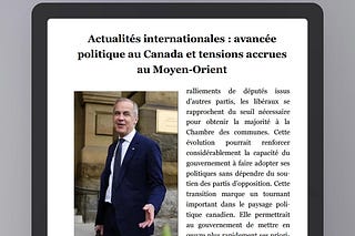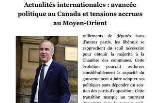 Actualités internationales : avancée politique au Canada et tensions accrues au Moyen-Orient
